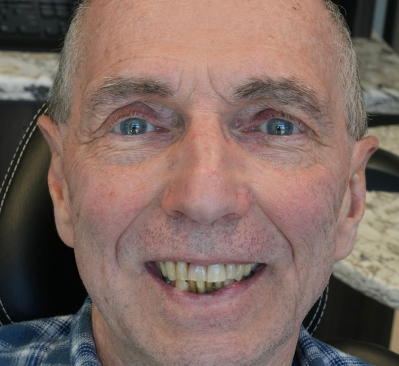 See the incredible results patients achieve in just one day with advanced full arch implant procedures. Slide the arrow to view their smile makeovers!